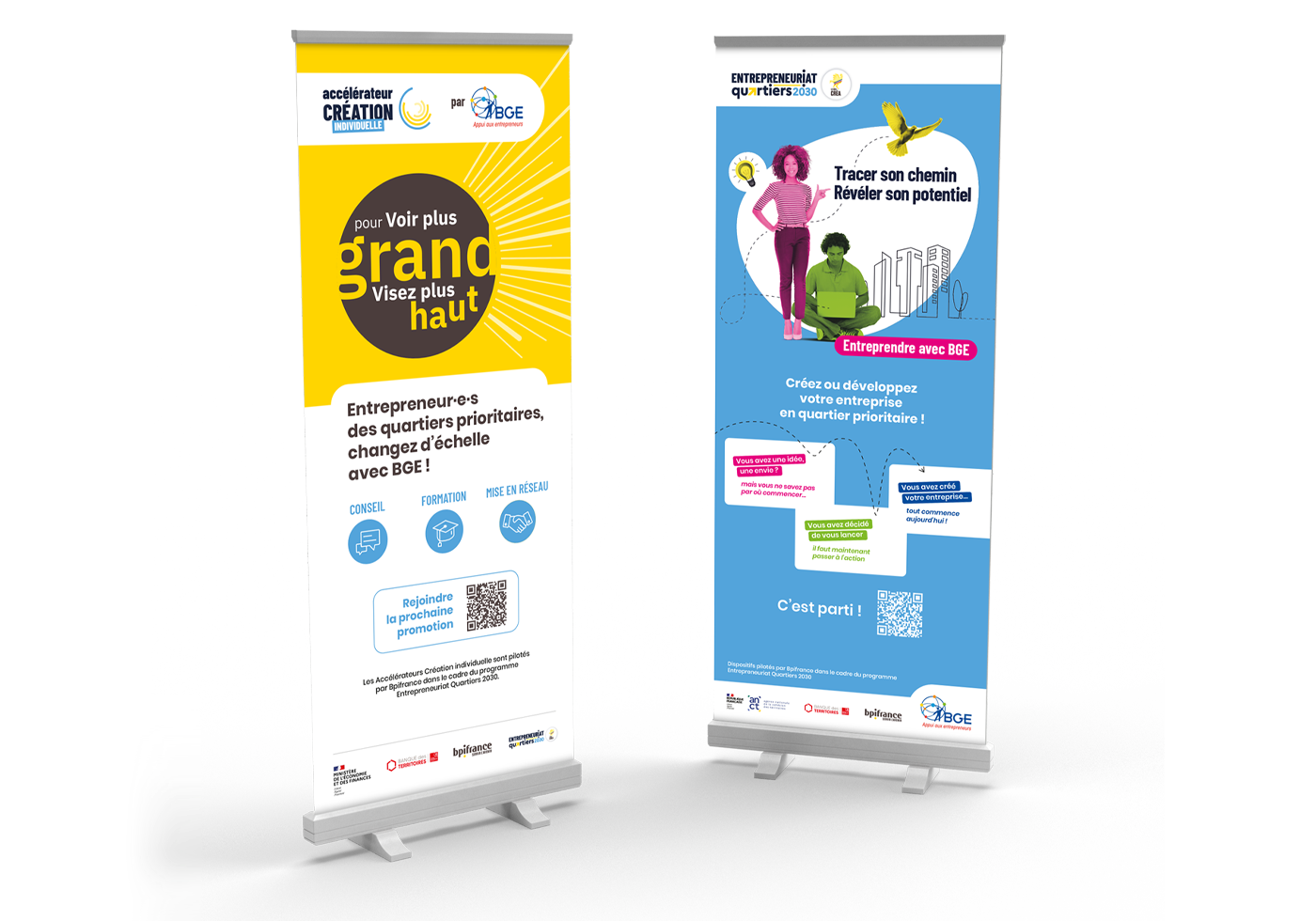 Dans le même temps, BGE met en place une campagne de communication à destination des entrepreneurs ou futur entrepreneurs situés dans les Quartiers qui souhaitent être accompagné dans le cadre de ce programme.